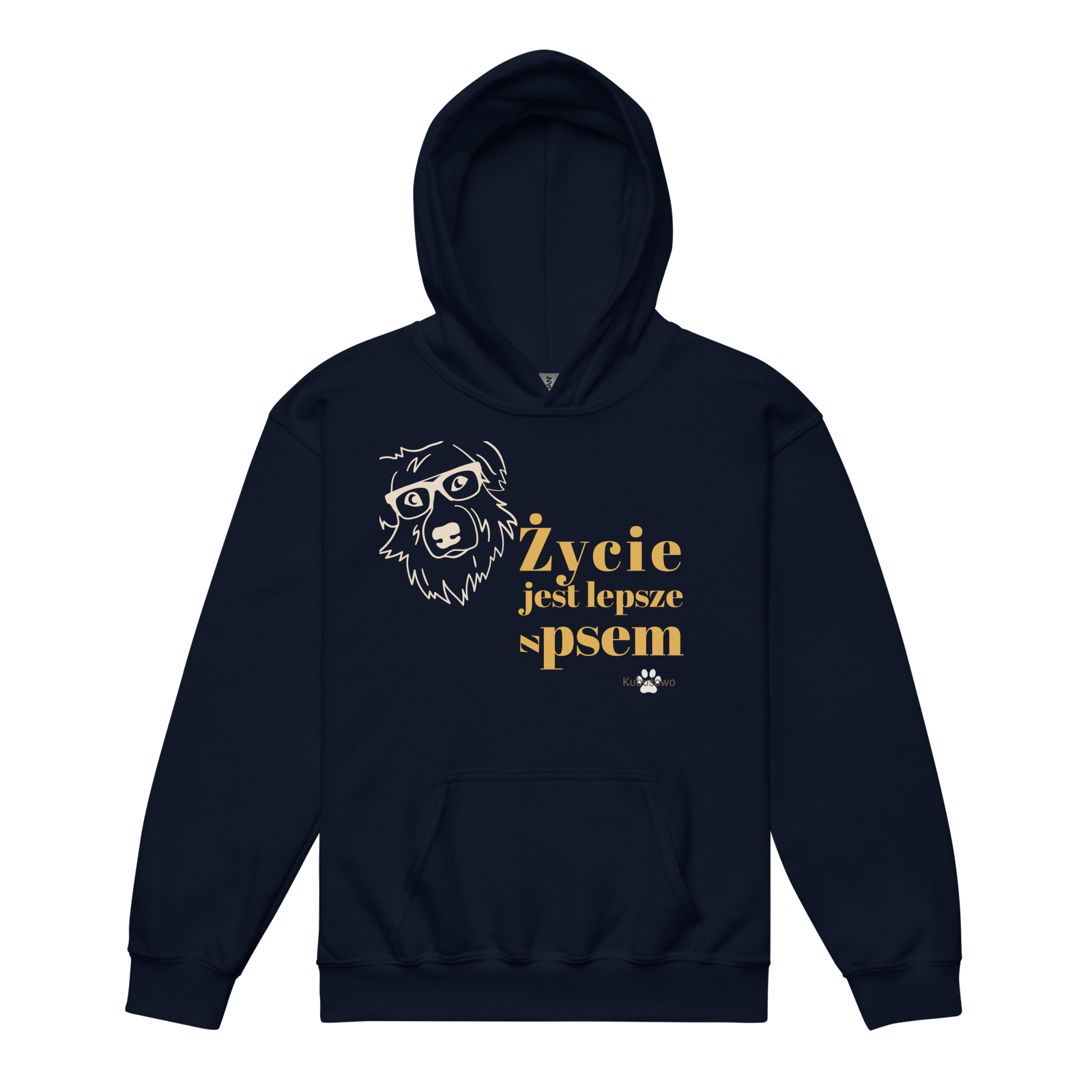Z przodu znajduje się piękny rysunek Kubusia w okularach i napis, z którym zgodzi się każdy miłośnik zwierząt: „Życie jest lepsze z psem”.