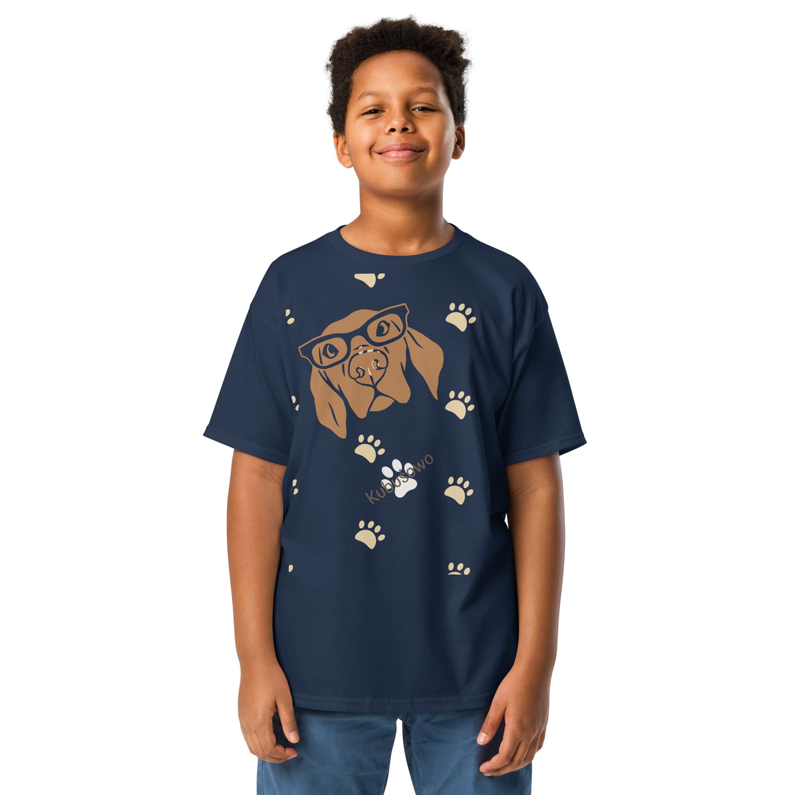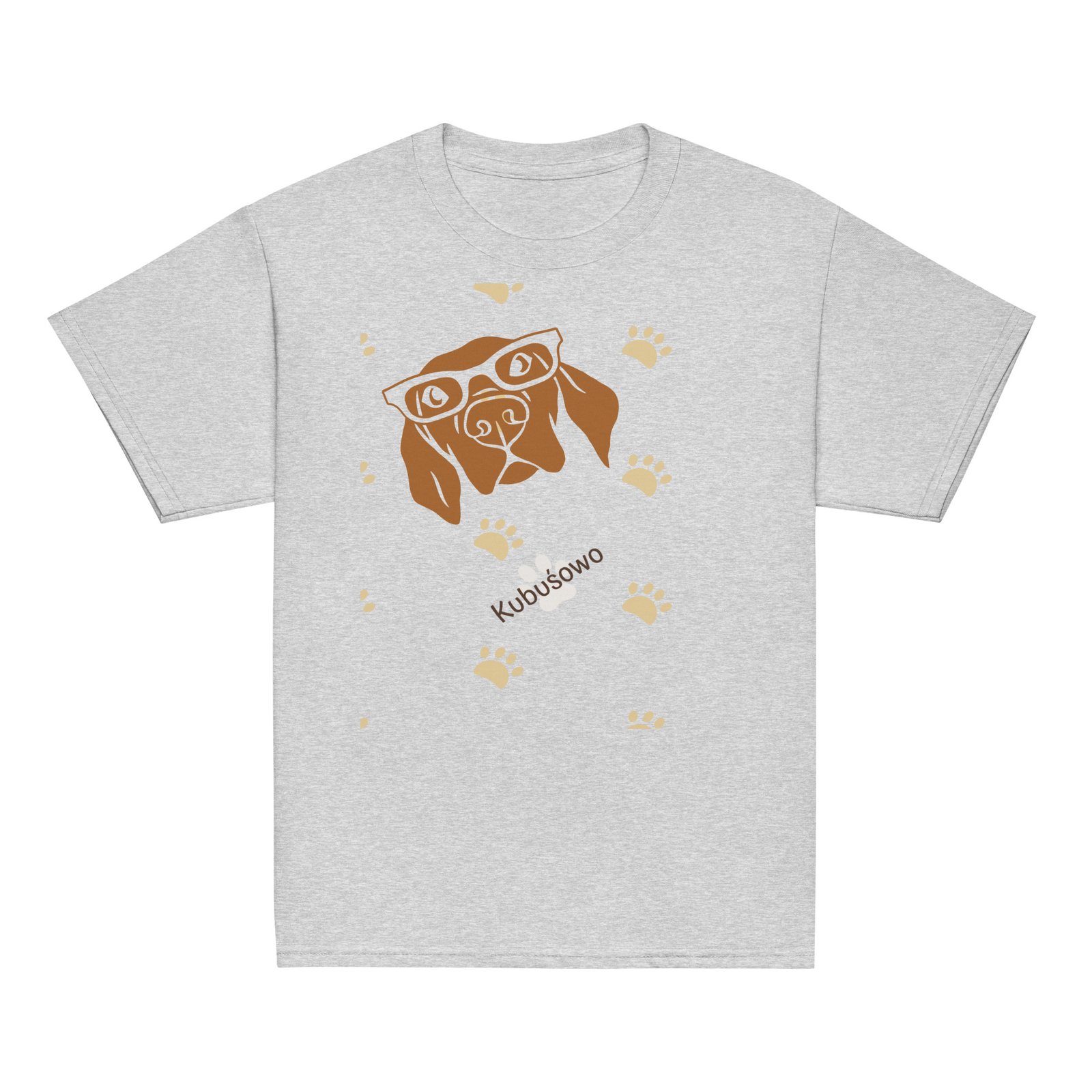 Cześć! To jest Kubuś. Jest bardzo mądrym pieskiem, który uwielbia czytać. Sama go narysowałam! Ta koszulka jest super miękka, idealna do szkoły, na plac zabaw czy do oglądania ulubionych bajek.